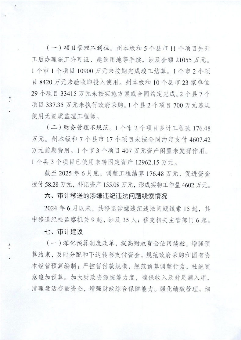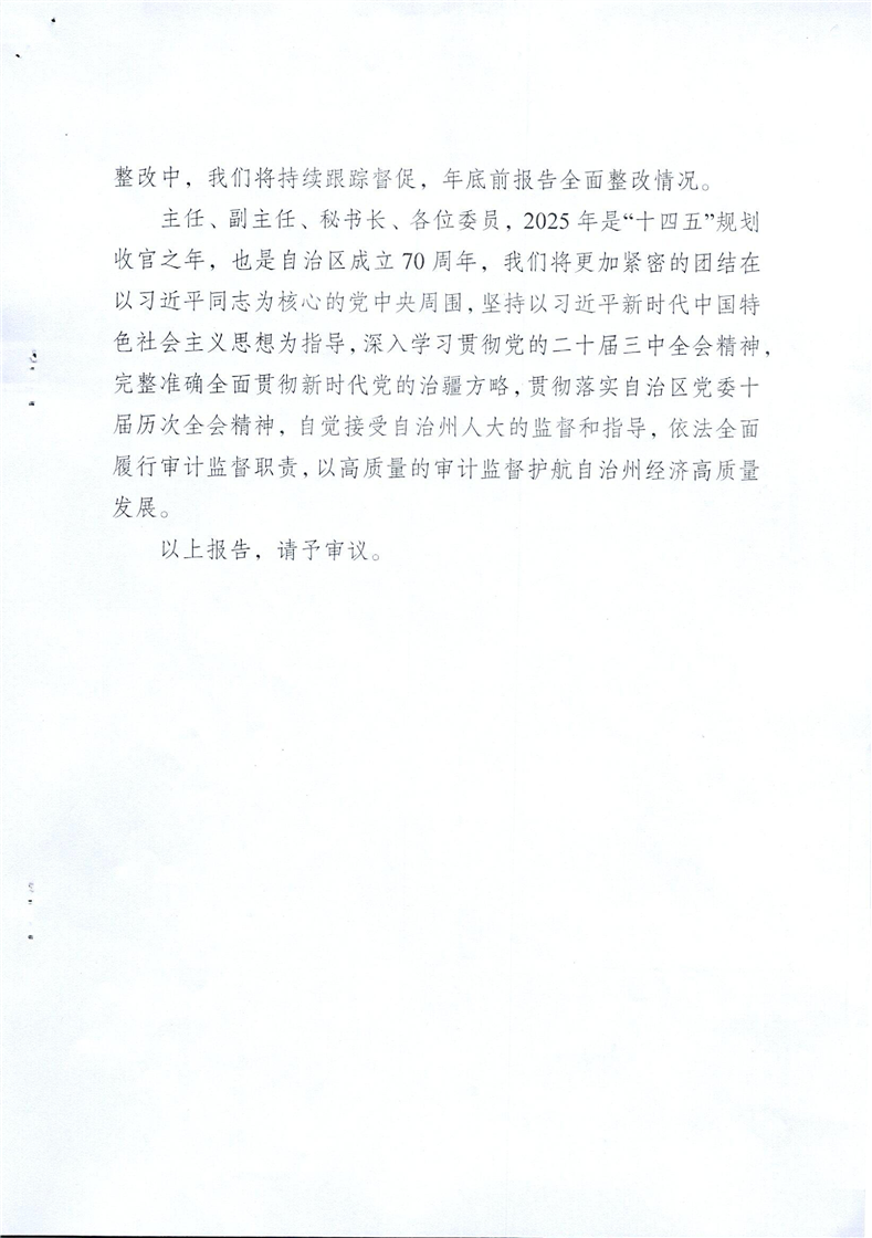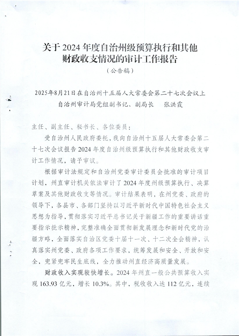 关于2024年度自治州级预算执行和其他财政收支情况的审计工作报告(公告稿)