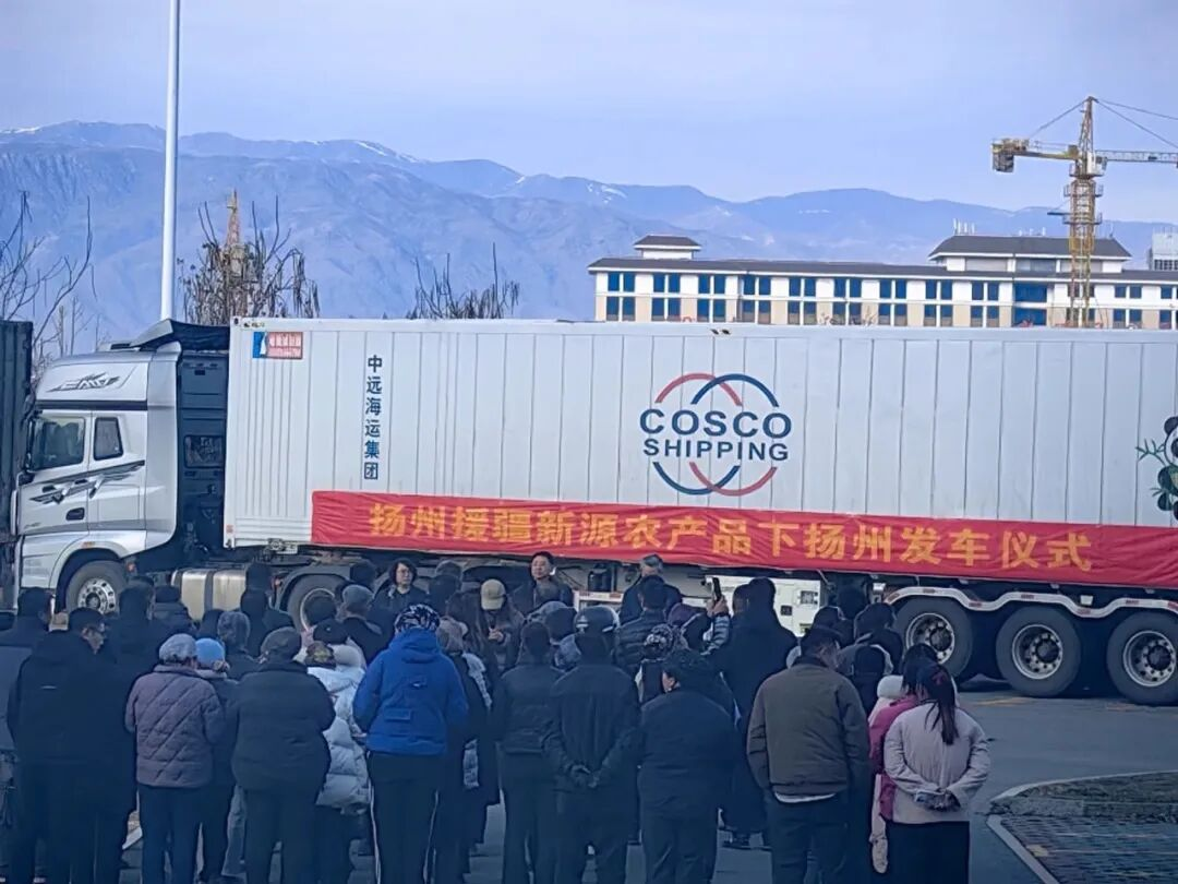 今年以来,通过对接协调,前后方联动,扬州援疆工作组已先后组织了3次新源特色农产品“下扬州”活动。本次共组织了650余吨特色农产品,包括三花鹅、冰糖心苹果、牛羊肉、干果、蜂蜜等,总价值累计达到750余万元,首批6辆卡车特色农产品将经过长途跋涉运往扬州。据不完全统计,每年扬州对口支援新源县消费帮扶金额达3000万元,进一步解决了新源县农特产品销路不畅问题,推动了农牧民增收致富。