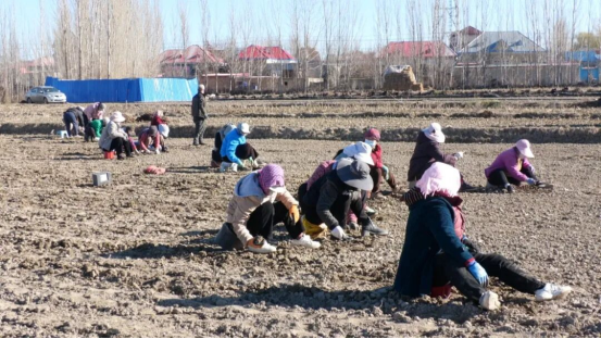 3月26日,巩留县东买里镇的田间地头一片繁忙景象。劳务经纪人马春梅正穿梭在田垄间,一边帮村民对接春季农业生产用工需求,一边手把手指导大家做好作物管护。