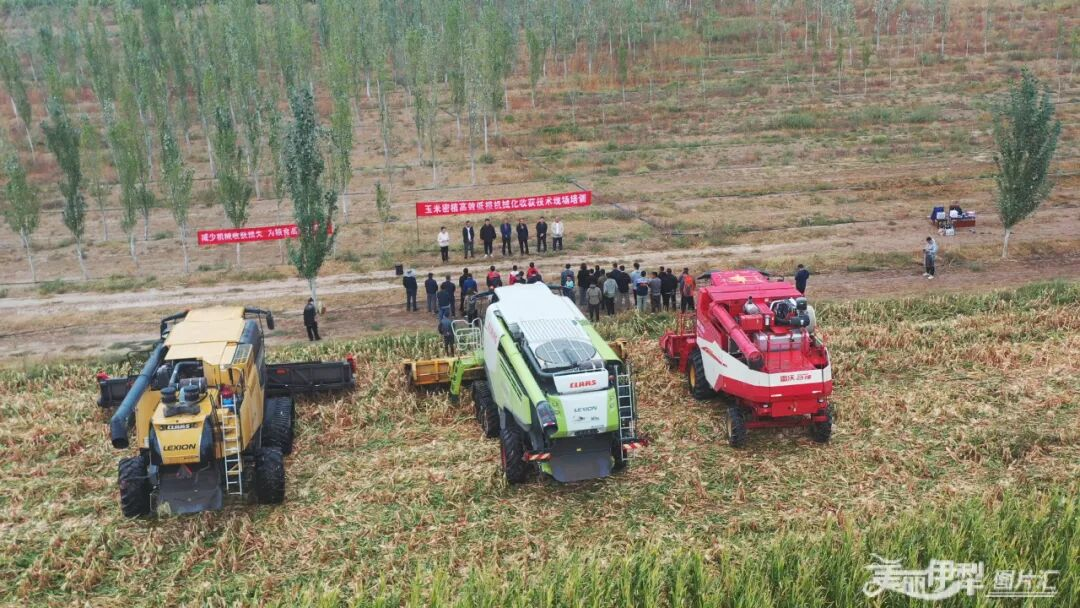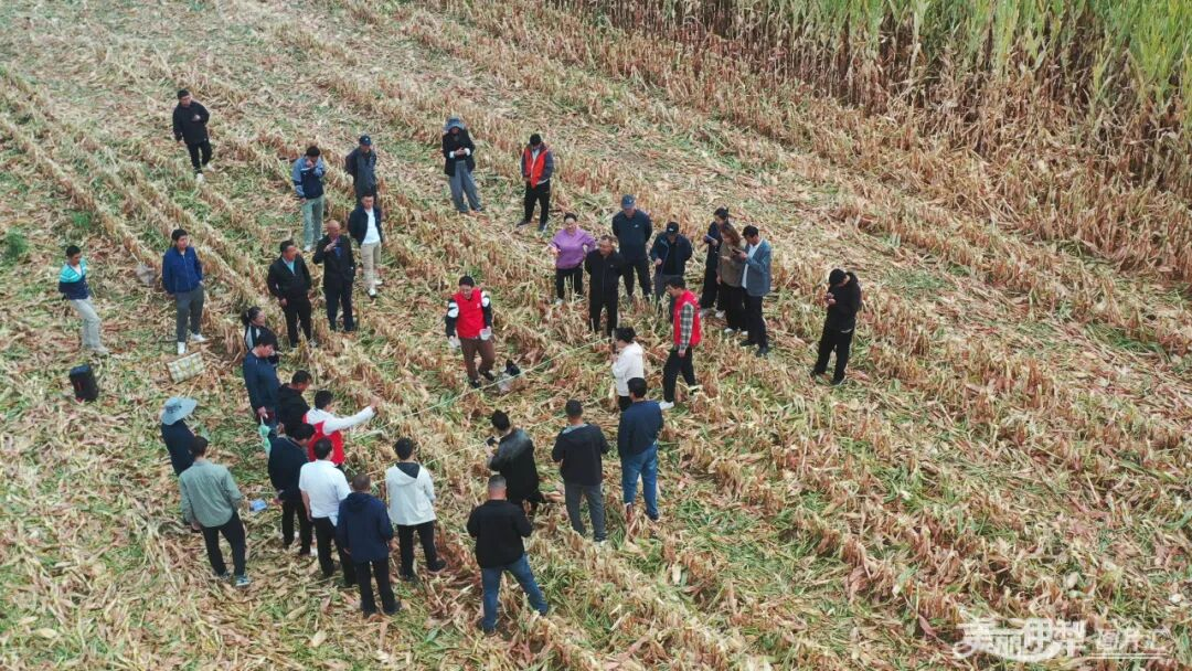 图为自治区玉米密植高效低损机械化收获现场培训会场景。