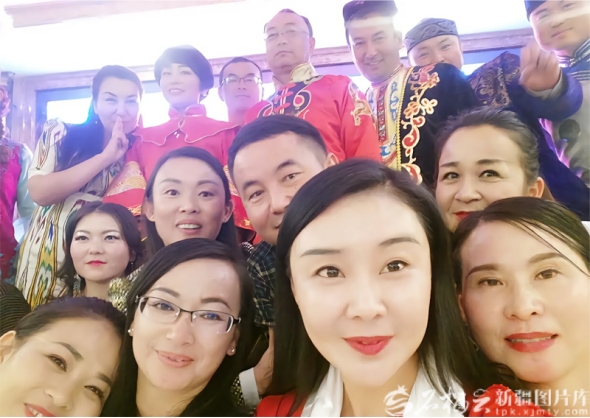时任昭苏县胡松图喀尔逊蒙古族乡党委书记的贺娇龙(前排右二),与当地干部群众自拍留念。资料图片