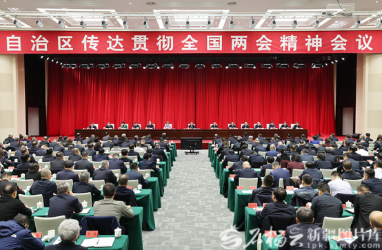 3月14日,自治区传达贯彻全国两会精神会议召开。自治区党委书记陈小江主持会议并讲话。石榴云/新疆日报记者崔志坚摄