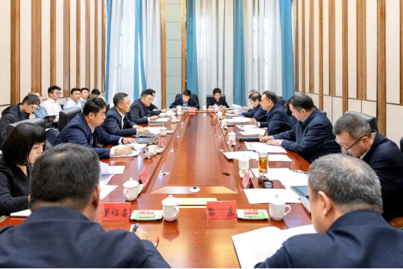 杨秀理、叶尔夏提·吐尔逊拜在霍尔果斯市就2026年经济运行情况组织研判分析。孙艺男摄