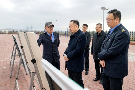 图为州党委书记杨秀理在布列开货运站,详细了解伊宁至阿克苏铁路项目建设、铁运物流发展布局等情况。孙艺男摄