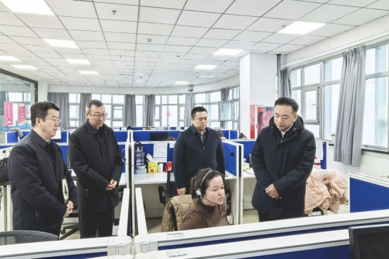 图为州党委书记杨秀理走进伊犁州12345政务服务便民热线中心,详细了解平台运行、诉求受理和群众满意率等情况。