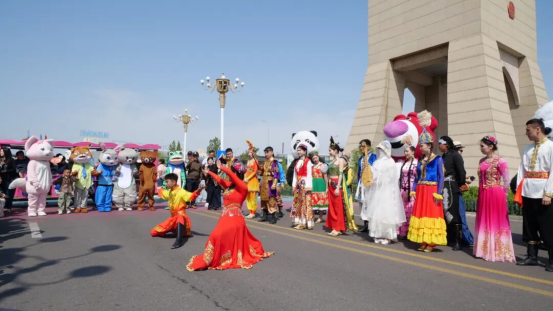 图为中哈霍尔果斯国际边境合作中心的歌舞表演。
