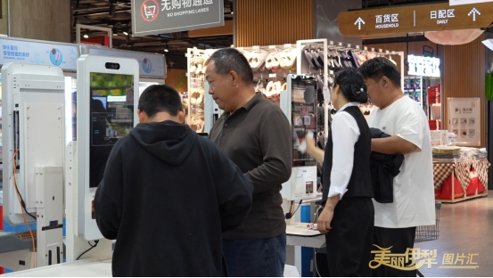 图为某超市收银处顾客正在自助缴费。