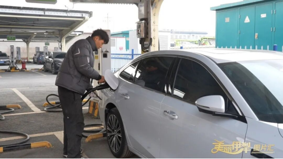 新能源车主热夏特·热合木说:“快充大约四五十分钟就能充满电,如果慢充我就把车停这里,回家睡觉,第二天早上来开车,家就在旁边非常方便。”