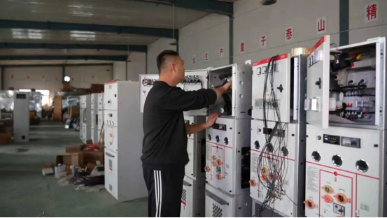 在伊犁宏昌低压电气设备有限责任公司生产车间,工作人员正在对最新生产的固体绝缘柜设备进行最后的调试工作。