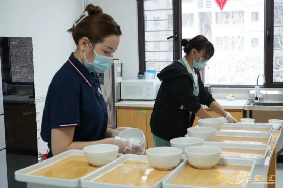 伊犁州社会福利院内,康养中心的照护员工正在为老人们配餐。李剑摄
