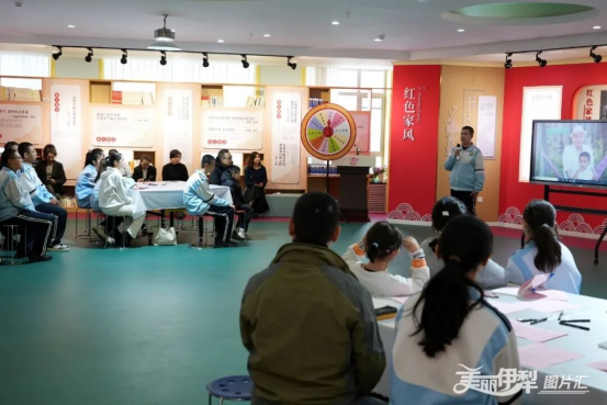 伊宁市第七中学3名学生的家庭讲述了自己的家风故事及家风传承,举行了家庭教育书籍《朱子家训》诵读活动。亲子游戏环节,通过2组家庭协作类游戏——齐转家风转盘,增强了亲子沟通与默契。最后全体家庭宣读了《家庭文明建设倡议书》。