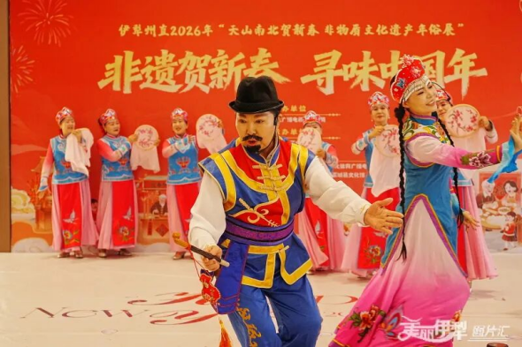 2月8日下午,伊宁市万容广场人声鼎沸、喜气洋洋。以“非遗贺新春,寻味中国年”为主题的2026年“天山南北贺新春非物质文化遗产年俗展”在此开幕。此次活动由伊犁州文化广播电视和旅游局主办,伊犁州文化艺术研究所承办。