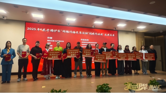 与会嘉宾为2025年“伊犁@你”网络传播活动、“花开游伊犁”网络传播竞赛活动以及2026年第一季度正能量网络名人短视频奖获奖代表颁奖,现场掌声此起彼伏,充分肯定广大网络创作者为宣传伊犁作出的积极贡献。
