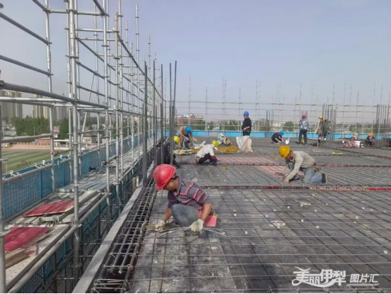 在伊宁市第一中学教学楼、宿舍楼建设项目现场,施工人员各司其职、默契协作,钢筋绑扎、模板支护等工序有序推进,一派热火朝天的奋进景象。