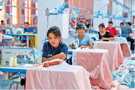 如今,伊宁县纺织产业园一期累计完成投资34亿元,建成标准化厂房和配套设施约45万平方米。华曙纺织、健骅纺织、大胜织造、贻程纺织、卓万服饰、大漠传奇家居用品等20多家纺纱、织造、家纺、服装企业先后入驻,吸纳5000余人就业,预期形成年产35万吨纱线、20亿米坯布的基础产能,已经成为全疆织机规模最大、带动就业最多、品牌效应最好的专业织造园区。二期工程今年6月建成后能再吸纳15家企业,吸纳4000余人就业。