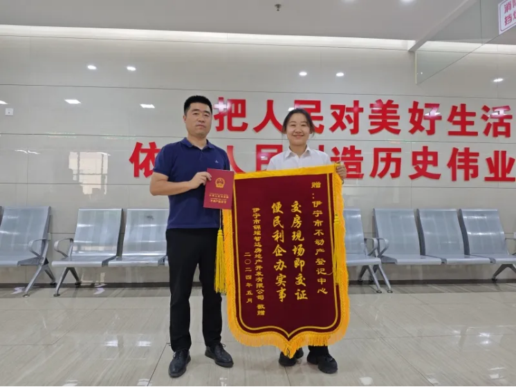 近日,伊宁市自然资源局不动产登记中心首次实现“交房即交证”,中南·水樾云锦一期项目的部分业主成为首批新建商品房“交房即交证”的受益者,在领取房门钥匙的同时也拿到了“大红本”。