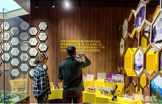 正是在企业的扶持下,居玛西江·阿亚提通过标准化养殖,蜂蜜质量更高,黑蜂蜂蜜的品牌得到市场认可,从卖原蜜到卖有品质的蜂蜜,他的收入比以前翻了好几番。