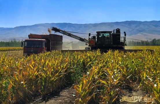每年的8月中下旬至9月中下旬,新源县别斯托别乡制种玉米进入采收关键期。田间地头,大型收割机穿梭往来,锋利割台精准切断秸秆、摘落玉米穗,饱满果穗经传送带直接装入运输车,全程无需过多人工干预——这幅充满“科技范儿”的农耕图景,离不开元利恒农机合作社的深耕。