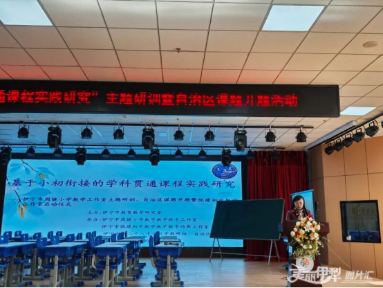 10月9日下午,由伊宁市教育教学研究室主办,周健小学数学、倪建初中数学教学能手培养工作室联合承办的“基于小初衔接的学科贯通课程实践研究”主题研训、自治区课题开题活动暨倪建工作室启动仪式,在伊宁市第二十八中学举行。伊宁市城乡各学校六、七年级数学骨干教师齐聚一堂,共同探讨义务教育阶段数学教学的贯通与衔接。