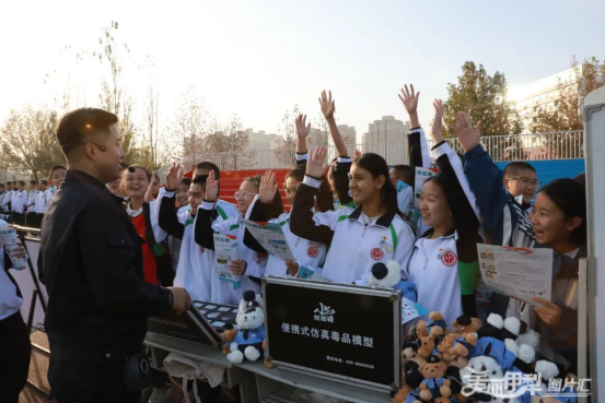 活动中,学生们有序沿跑操方向循环游园,在班级展台学习日常安全常识,在公安展台获取专业防护指导,实现了“日常安全+专业防护”知识双收获。