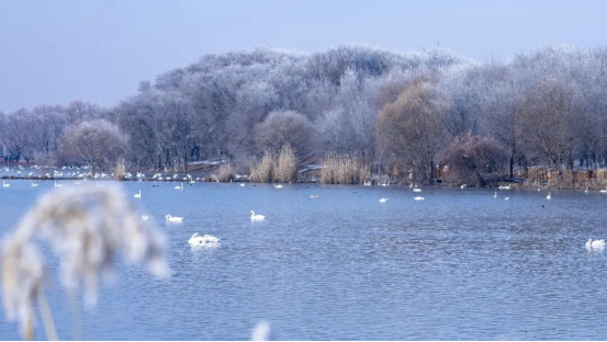 河北省石家庄市游客罗泽说:“来到新疆后,这里的景致让我格外惊艳!雾凇晶莹剔透,天鹅自在嬉戏,这些在河北是难得一见的景象。我拍了很多天鹅和雾凇的照片。”