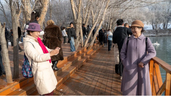 上海游客真子说:“作为第一次来新疆的游客,有幸尽数领略了这里的日出、雾凇与天鹅,景致美不胜收。恰逢景区举办特色活动,现场格外热闹,这场初体验圆满又尽兴,让我们对后续旅程充满期待。”