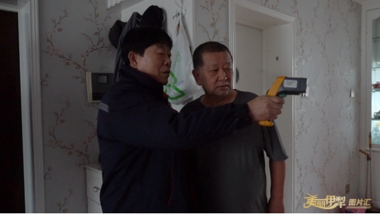 12月15日,伊宁市供热有限公司工作人员入户测温。李亚锋摄
