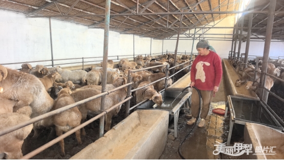 阿米娜·吾布里卡斯木正在喂羊。王志华摄