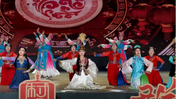 演出分为《骏马踏春·乐满乡村》《民俗润心·情暖家园》《同心筑梦·共赴华章》三个篇章。器乐演奏《赛马》创新搭配二胡、冬不拉、东布尔等弦乐与萨克斯、大号等管乐及手风琴联奏,既保留《赛马》原有的热血与豪迈,又通过音色碰撞、节奏重构,赋予经典全新的听觉维度,实现传统民乐的现代表达和跨界突破,赢得满堂喝彩。戏曲联唱以跨剧种融合、非物质文化遗产活化、现代表达为核心,打破传统戏曲的地域与形式壁垒,将京剧、淮剧、豫剧与非物质文化遗产剧目“汗都春”熔于一炉,打造出兼具文化厚度与时代活力的全新舞台艺术,是传统戏曲守正创新的生动实践。情景剧《走在大道上》以自治区级道德模范吐尔汗巴衣·吾格斯巴衣的故事为原型,向观众展示吐尔汗巴衣自强不息、用双手奏响生命强音的感人故事,引发观众的情感共鸣。