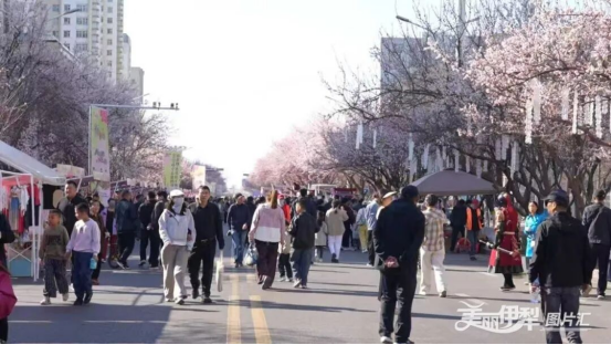 伊宁市海棠路杏花语文旅活动,游人如织。