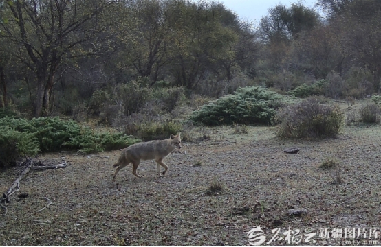 在昭苏县夏特柯尔克孜族乡北部灌木林区出没的亚洲胡狼。图片由自治区林业科学院提供