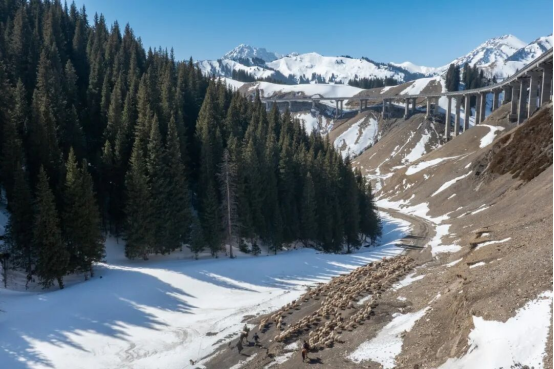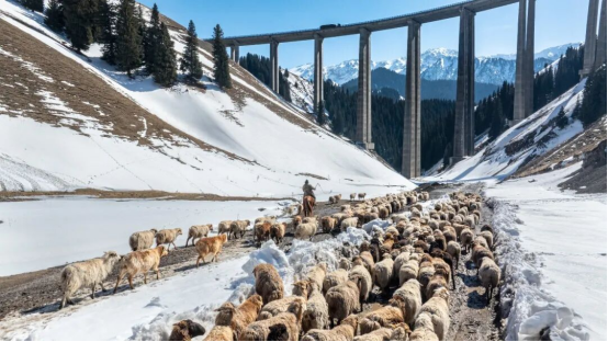连日来,随着天气转暖,在冬牧场过冬的霍城县牧民赶着牲畜陆续踏上春季转场路,当地畜牧部门和乡镇专门安排工作人员分批跟随牧民为他们提供服务保障,并在转场途中设置两个中转点,为牧民提供免费服务和应急就医、给牲畜提供饲草补给。今年,霍城县共有7个乡镇387户牧民的11万余牲畜进行春季转场,预计3月底全部完成。(记者赖宇宁张庆华)