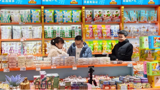记者近日在“果满热巴”新疆特产店看到,顾客不断。店主介绍,今年春节比往年春节人更多,氛围更热闹,初一至初十,每天进店人数超过500人次,销售额比春节前翻了两倍。
