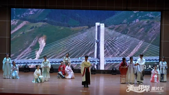 活动现场亮点纷呈、暖意涌动,各类诵读与展示活动轮番上演,让书香浸润人心。幼儿情景剧演绎经典词作,以童真童趣传递中华文脉;少年吟诵古典诗词,尽显新时代青少年的昂扬风采。诗词接力、寄语伊犁等互动环节,让现场氛围持续升温。援疆工作者畅谈初心使命,传递苏伊同心的深厚情谊;文艺工作者以笔墨、剪纸为载体,诠释伊犁深厚文化底蕴;基层工作者讲述坚守故事,传递民生温度;媒体人追忆家国记忆,传递责任担当。情景诗朗诵、主题小品、集体朗诵等节目依次登场,或温婉雅致、或慷慨激昂,既彰显中华优秀传统文化的独特魅力,又凝聚起铸牢中华民族共同体意识的强大力量,让阅读兼具历史厚度与时代温度。