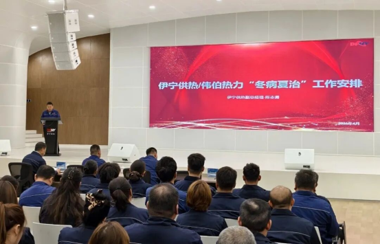 4月10日,伊宁市供热有限公司及伊犁伟伯热力有限责任公司召开供暖期总结暨“冬病夏治”工作动员大会现场。伊宁市供热有限公司供图