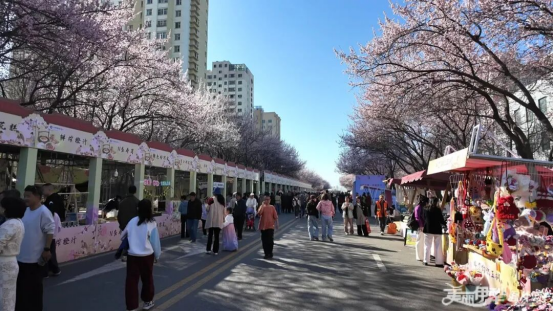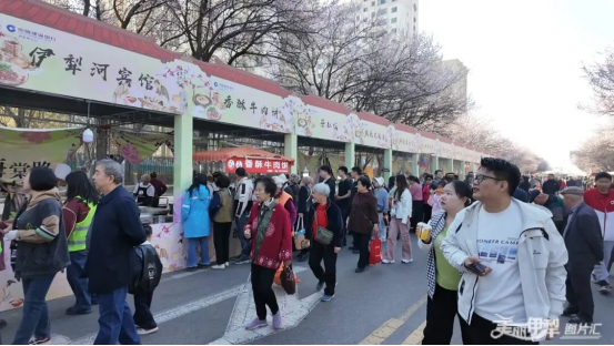 3月的海棠路,杏花绽放,游人如织。伊宁市第四届“海棠路·杏花语”主题文旅活动的第二天恰逢周末,整条海棠路上人头攒动,热闹非凡。本次活动以“一轴三境”的创新空间规划,将特色业态与杏花景观深度融合,为市民和游客打造了一场可玩、可看、可沉浸的春日文旅盛宴。