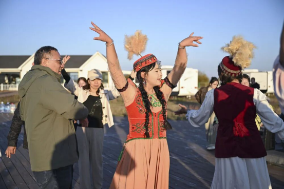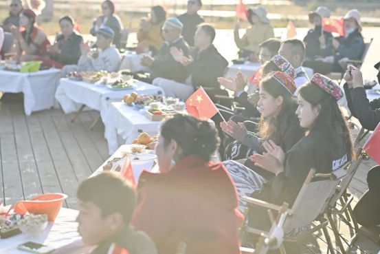 晚霞映照下,新疆伊犁昭苏喀尔坎特草原一片金黄,天山雪峰直入云霄。壮美天地间,一方热闹舞台上,江苏泰州援疆干部人才邀请昭苏农牧民家庭代表共话团圆,谈发展聊变化,畅叙温情。