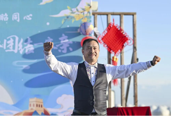 舞不停,歌不断。援疆医生王斌独唱一首《但愿人长久》,为现场观众和万里之外的家人送上祝福。众人打着节拍,轻声和唱。