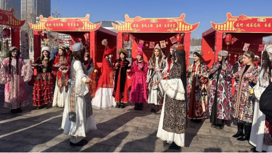 伊犁州党委副书记、江苏援伊前方指挥部党委书记、总指挥赵庆红,江苏省发展改革委副主任王荣飞,伊犁州政府党组成员、江苏援伊前方指挥部党委副书记、副总指挥李占超等苏伊两地相关负责人出席活动。在七彩广场主会场和六星街分会场,128个展位整齐排布、亮点纷呈,全方位呈现苏伊两地的特色好物。非遗手作区内,苏州绣娘指尖流转的“双面绣”与伊犁工匠手中的哈萨克族皮革雕花相映成趣;年味美食街上,南京鸭血粉丝汤的热气氤氲鲜香,与伊犁熏马肠的醇厚风味交织成一场跨越地域的味觉对话;特色农产品区更是人头攒动,江苏盐水鸭、黄桥烧饼与伊犁蜂蜜、薰衣草制品等苏伊两地名优产品琳琅满目,不少市民穿梭其间,精心挑选心仪的年货。展位间不时传来欢声笑语,浓浓的年味在两地的文化交融中愈发温暖动人。