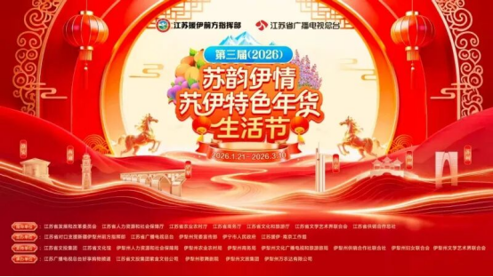 为传承春节文化、深化文化润心工程,推动“伊品入苏、苏品入伊”,促进苏伊两地全方位交融,第三届(2026)“苏韵伊情·苏伊特色年货生活节”将于春节前在伊犁州、江苏省两地举办。其中,伊犁州的活动将在伊宁市七彩广场(主会场)和伊宁市六星街景区(分会场)精彩亮相,以“年货主体+多元配套”的集成模式,为各族群众送上新春文化盛宴。