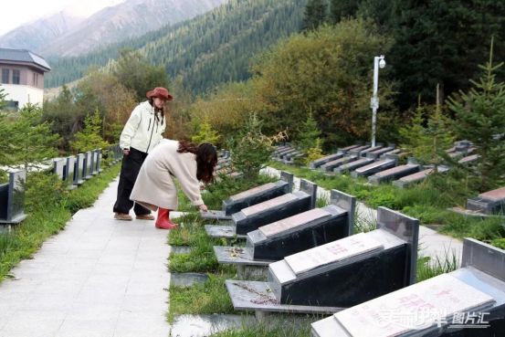 人们在乔尔玛烈士陵园祭奠为修建独库公路牺牲的英雄。李剑摄