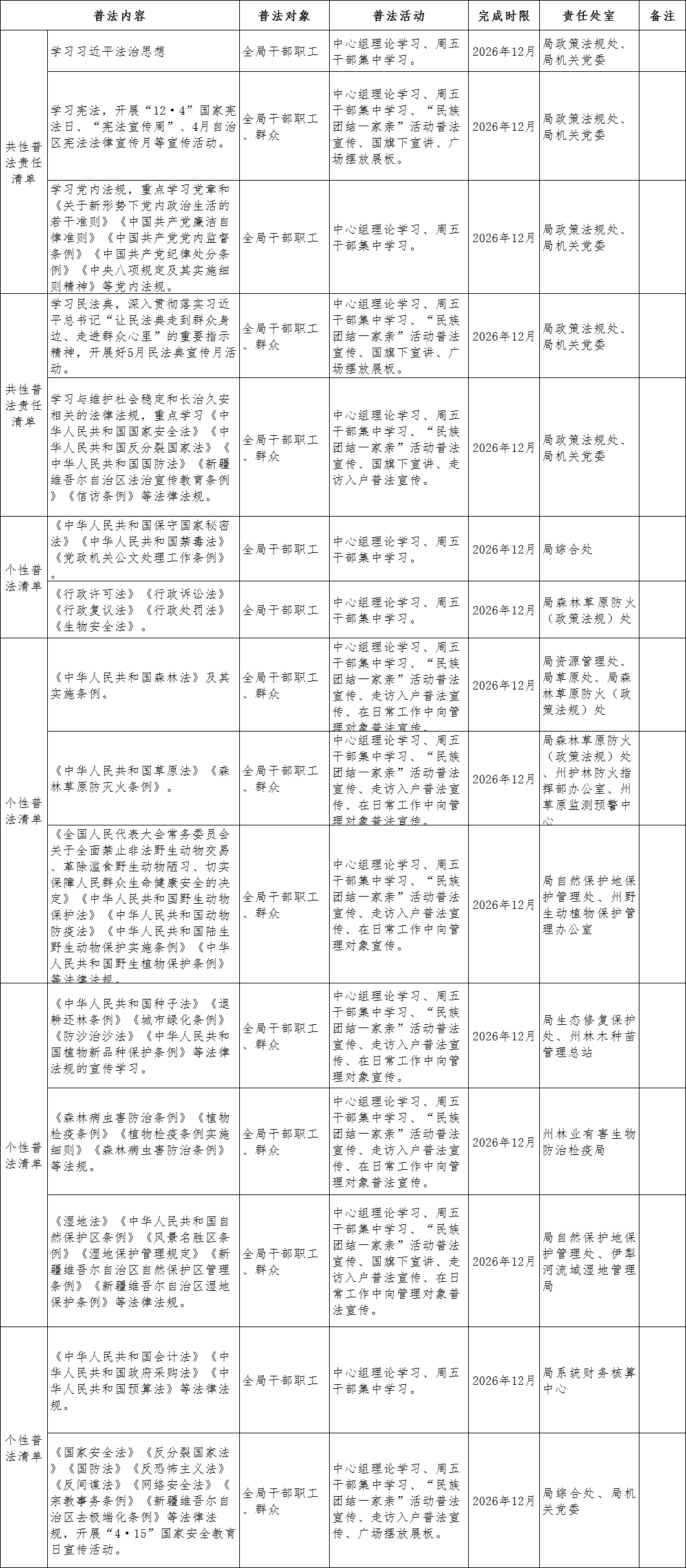 伊犁州林业和草原局普法责任清单