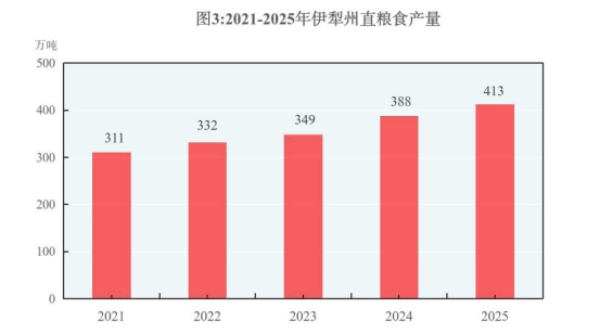 州直全年粮食产量(含薯类)412.54万吨,比上年增加24.89万吨,增产6.4%。其中,小麦产量62.42万吨,减产20.6%;玉米产量332.43万吨,增产14.2%;稻谷产量6.04万吨,增产3.6%。(见图3)