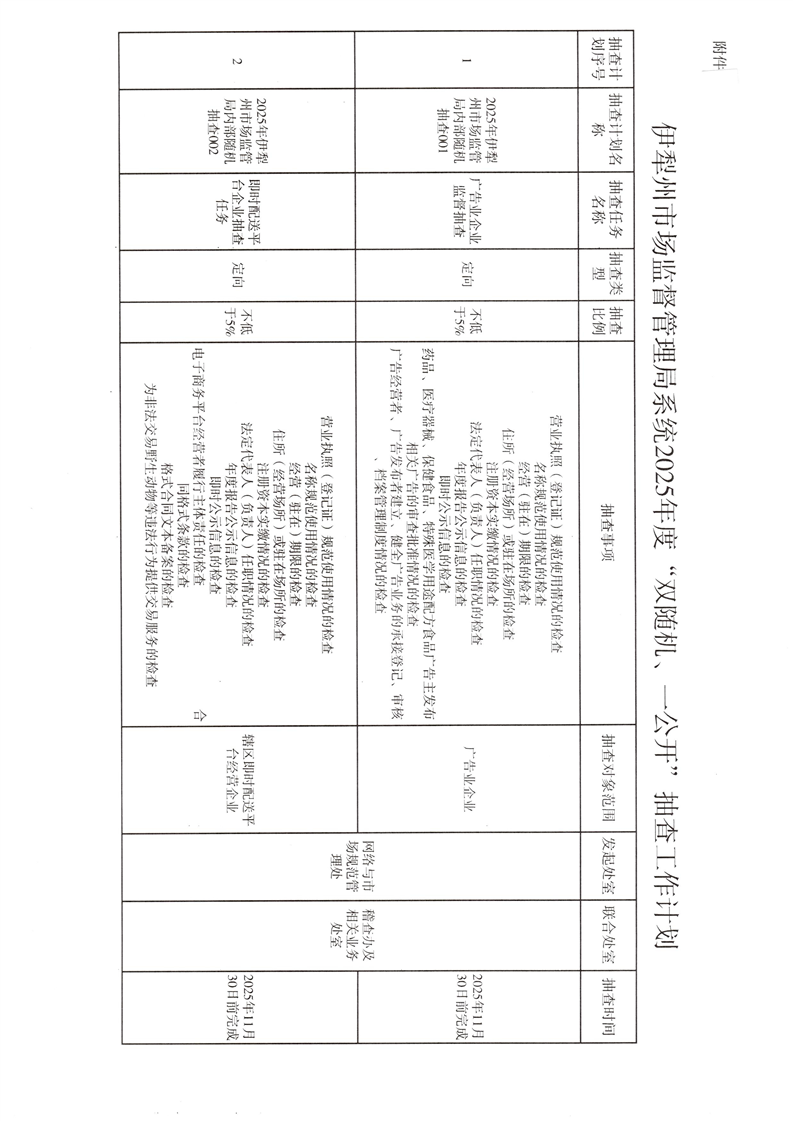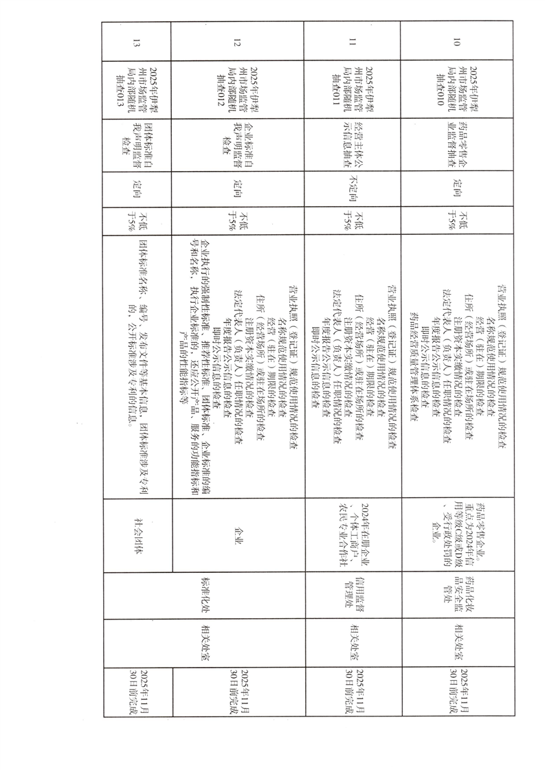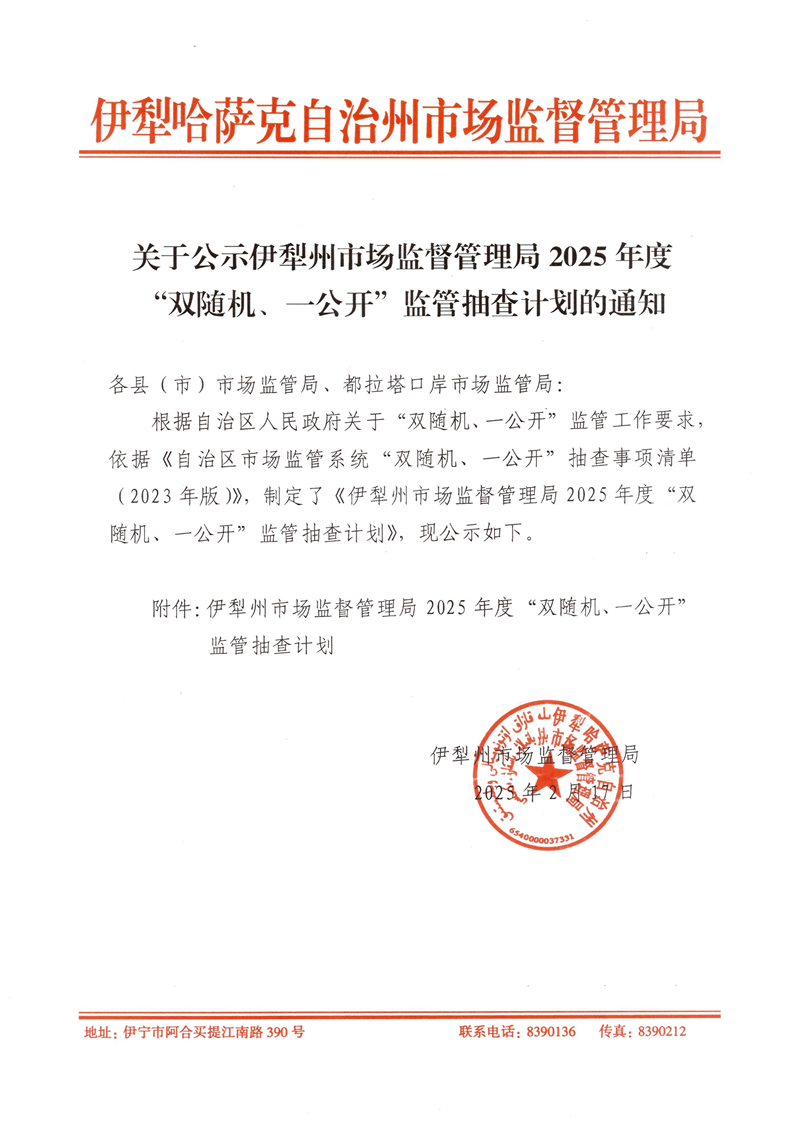 关于公示伊犁州市场监督管理局2025年度“双随机、一公开”监管抽查计划的通知