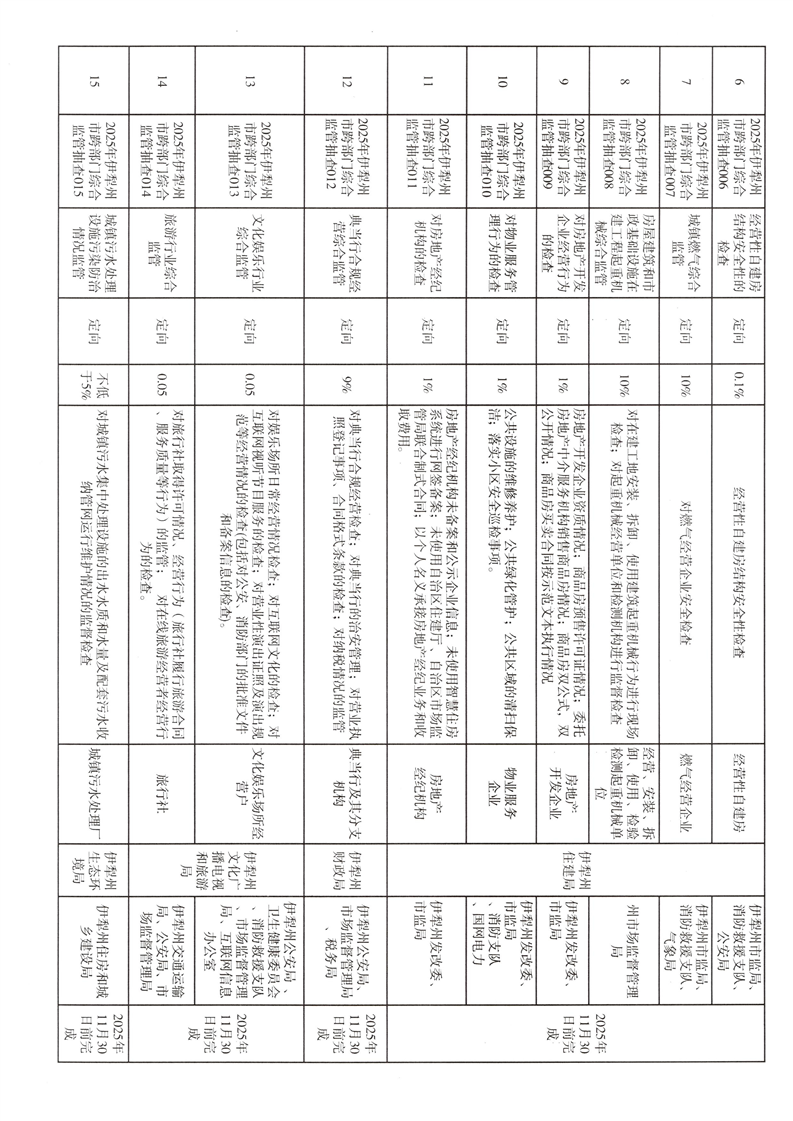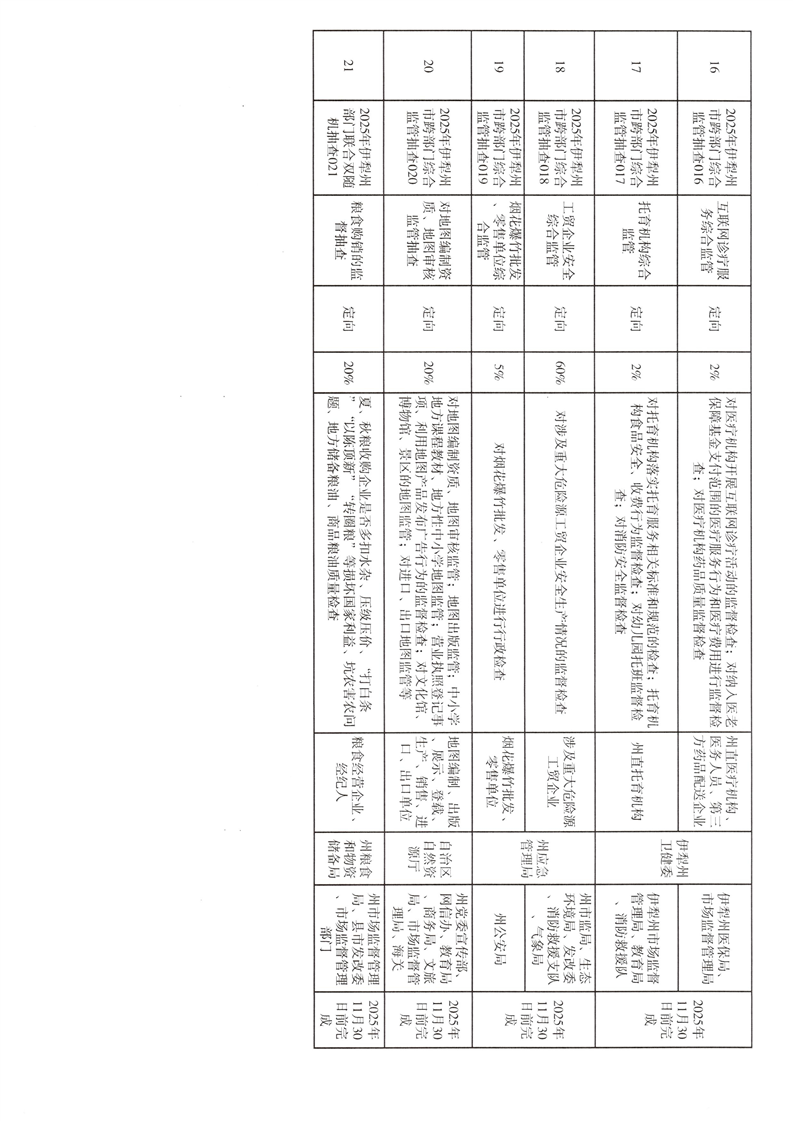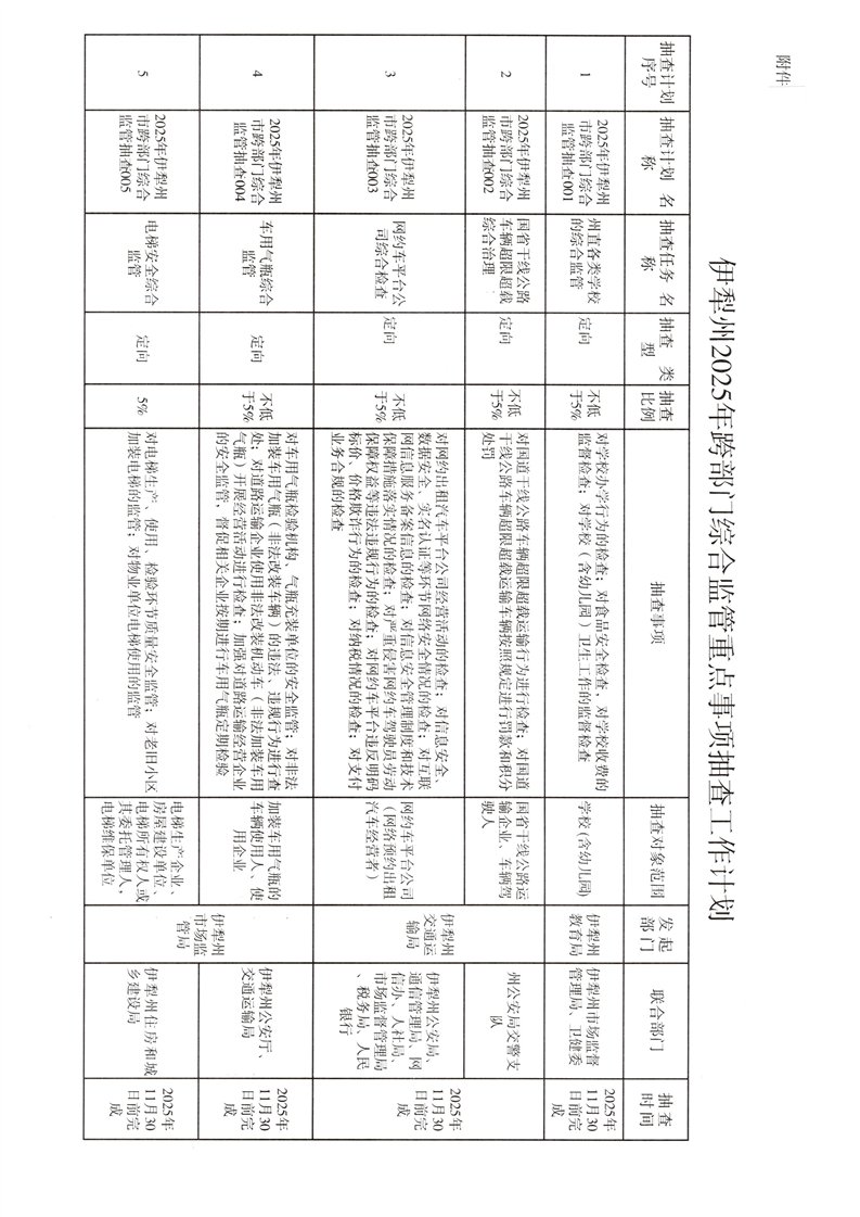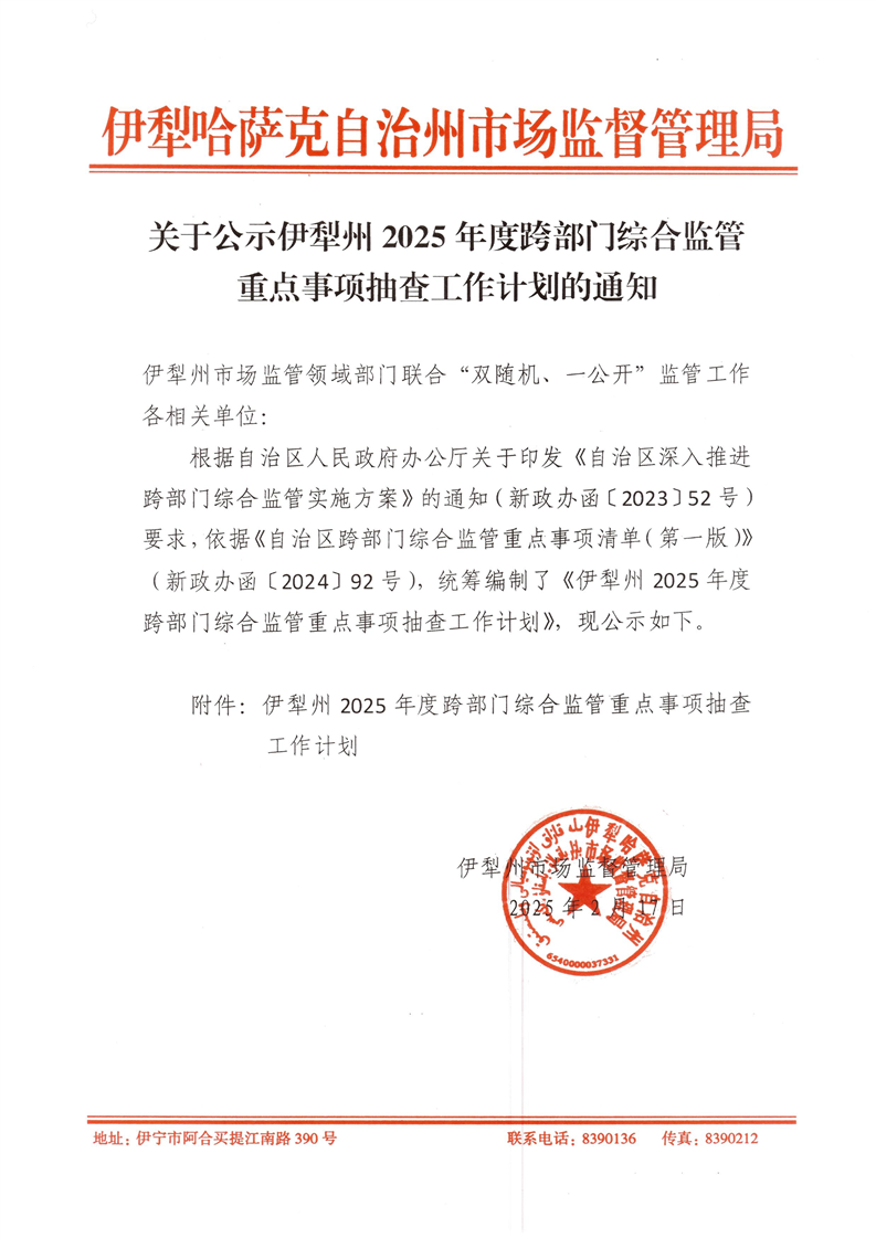 关于公示伊犁州2025年度跨部门综合监管重点事项抽查工作计划的通知