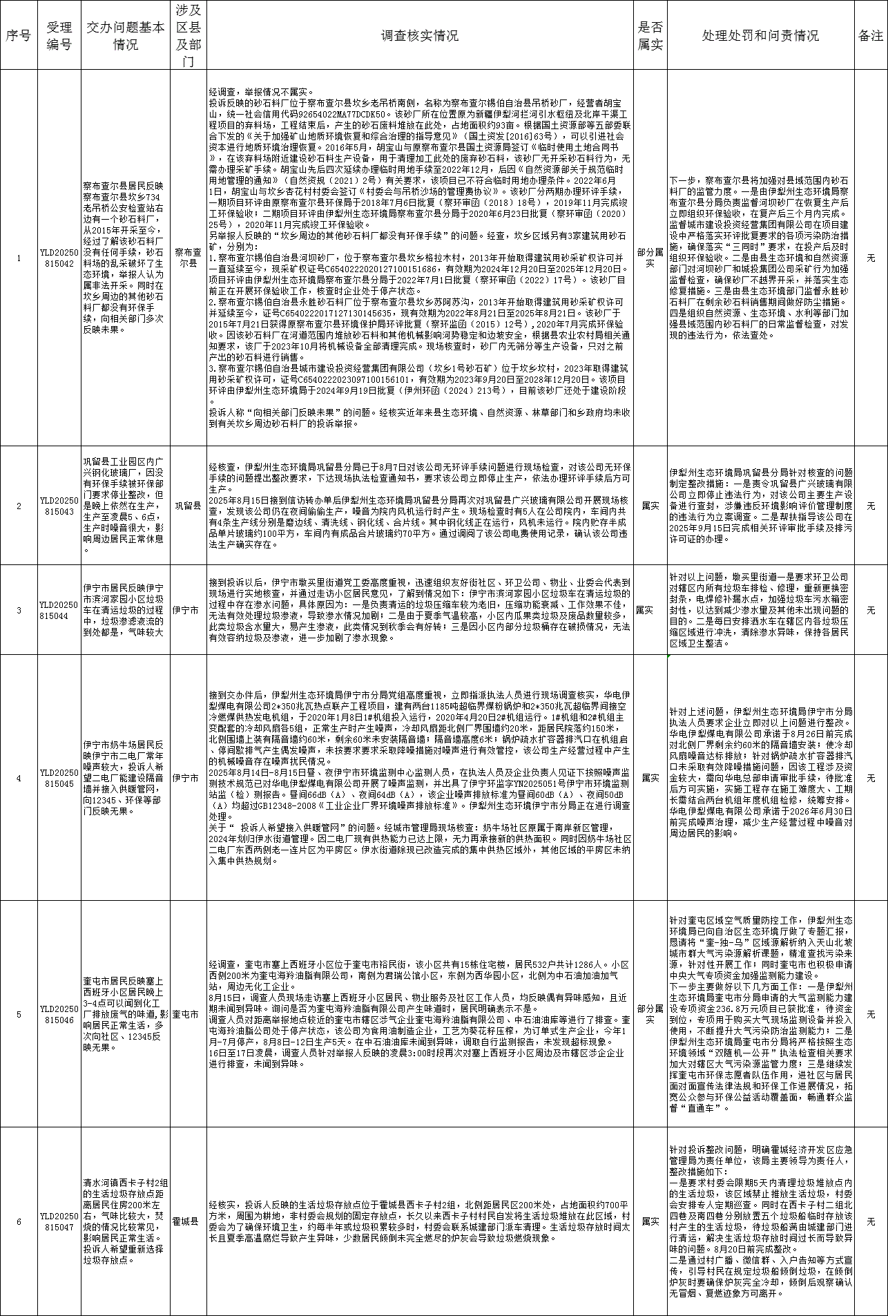 自治区第三生态环境保护督察组交办涉及伊犁州生态环境信访件第十批6件,现将交办问题结果通报如下: