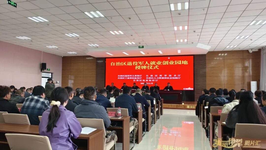 图为自治区退役军人就业创业园地授牌仪式现场。