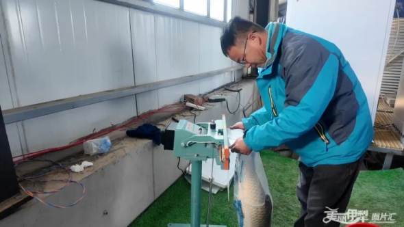 在位于伊宁市阿热吾斯塘镇库台曼村的西汇渔业产业园室内养殖场房内,记者看到一个个陆基池内的草鱼、梭边鱼、鲤鱼等正欢快地游来游去,工人们正在捕捞已经完成“吊水”养殖的草鱼,并逐个将其装入活鱼充氧袋中,打足氧气后送往伊宁市各大餐厅。