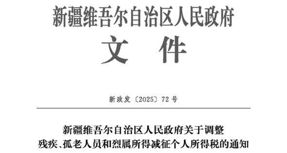 12月26日,自治区人民政府网站发布通知,调整残疾、孤老人员和烈属所得减征个人所得税。