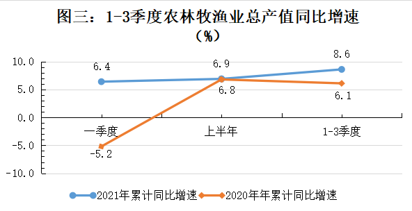 农产品供给充足,肉、蛋、奶产量增长。前三季度,猪牛羊出栏426.06万头(只),增长18.1%;猪牛羊禽肉产量14.68万吨,增长31.2%;牛奶产量23.28万吨,增长21.9%;禽蛋产量5.01万吨,增长7.7%。